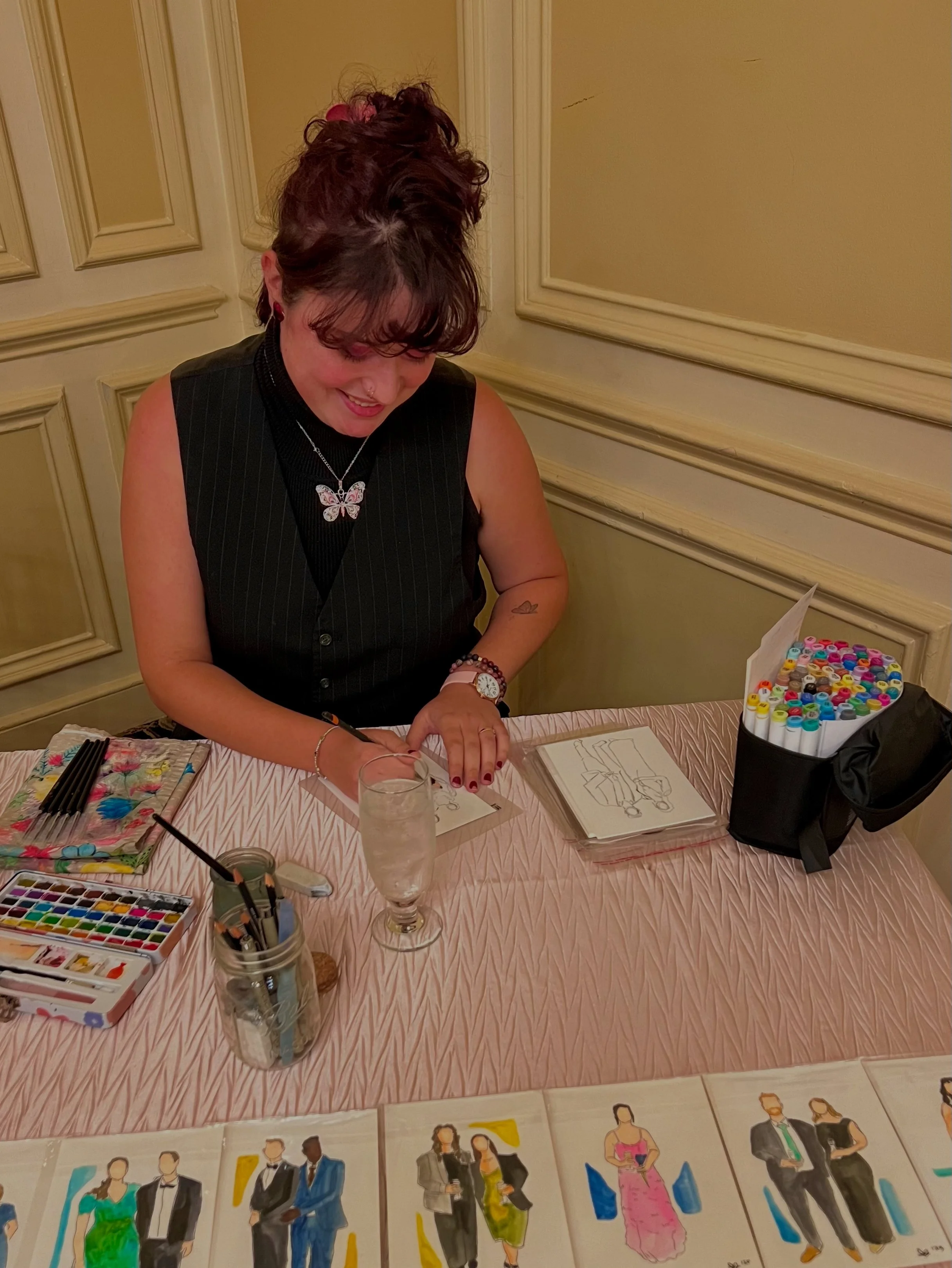 all i need is a table and a chair! i will paint small watercolor sketches for each guest, throughout your magical night. make your guests feel just as special as you do getting married to the love of your life.